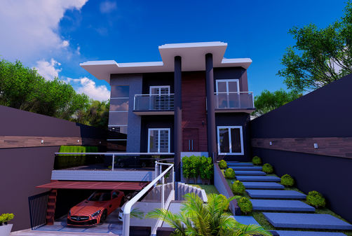 Projeto 3D da fachada de dois sobrados a serem executados no Tropical III, vamos iniciar a limpeza e fechamento do terreno ainda em dezembro de 2020, e iniciar a obra em Janeiro de 2021.